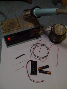 You will need an LED, battery holder for 2 x AAA batteries, 100 ohm resistor, a small slider switch (unless the battery holder has one at the end). I got all this from RS components in Hedge End except for the slider switches which I ordered from Amazon for 60p for a pack. They come direct from China and the price includes delivery! How???