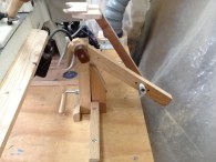 In use the blank is held between centres. The jig template arm must of course fall directly over the blank. The template arm at first is positioned clear of the revolving blank.