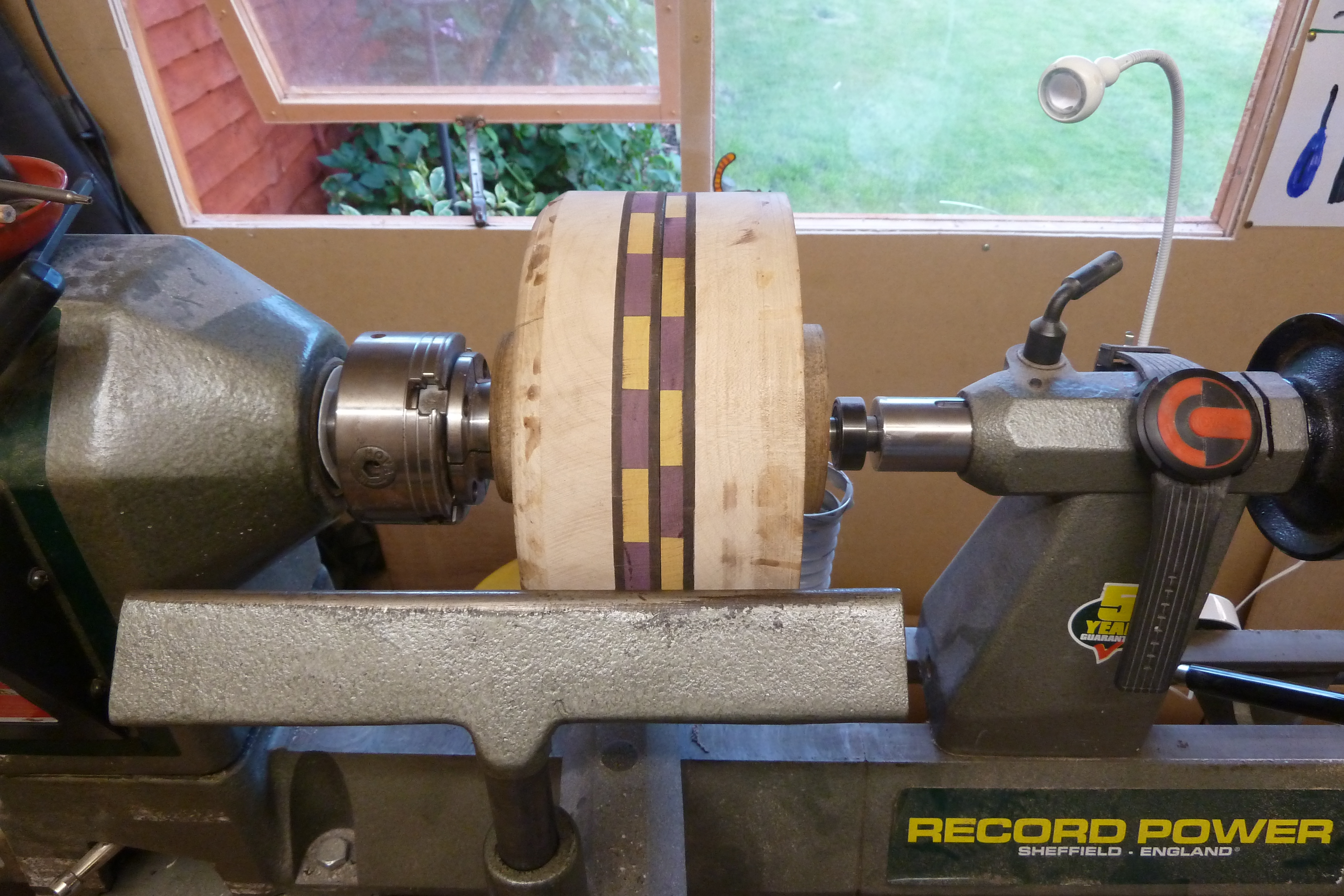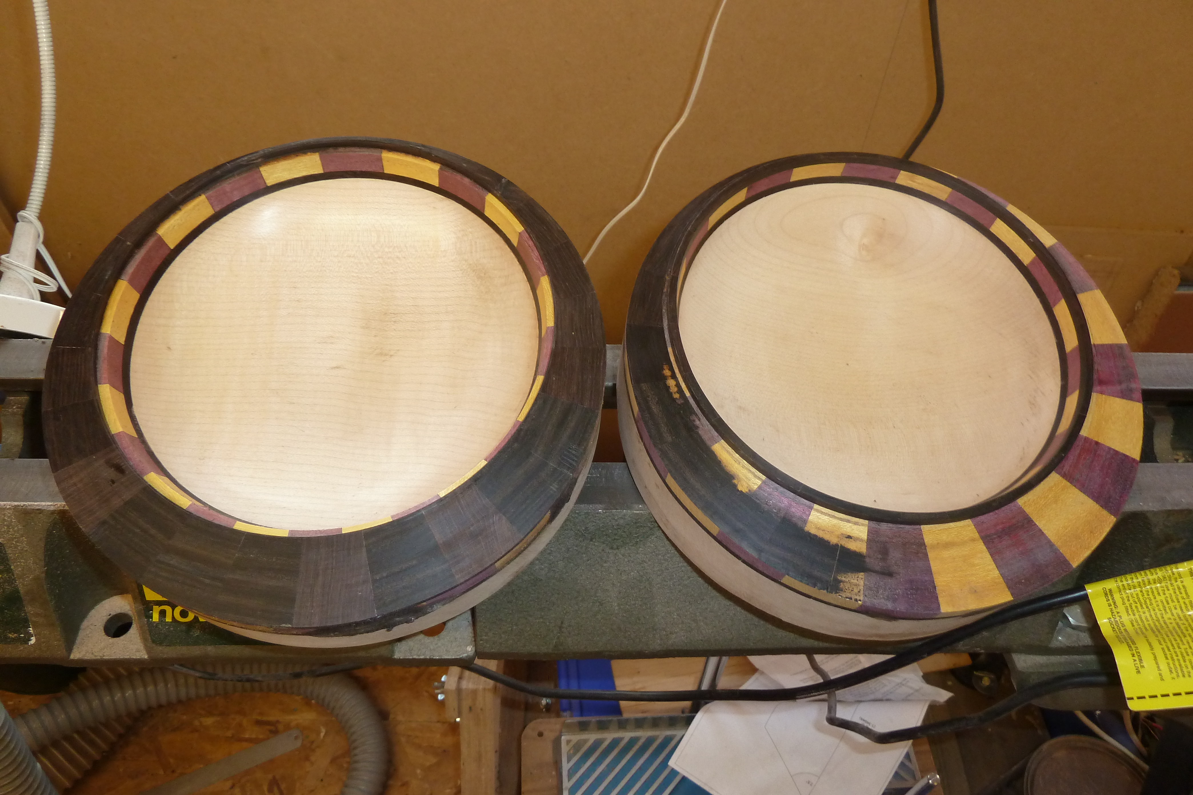 The project involves creating 2 identical off centre bowls. I used scyamore for the main bowls with a segmented trim of purpleheart, lemonwood and blackwood to hide the join. Sizes of the bowls aren’t really inportant – just that they are the same. I believe the bowl blanks were 12x3inchs.